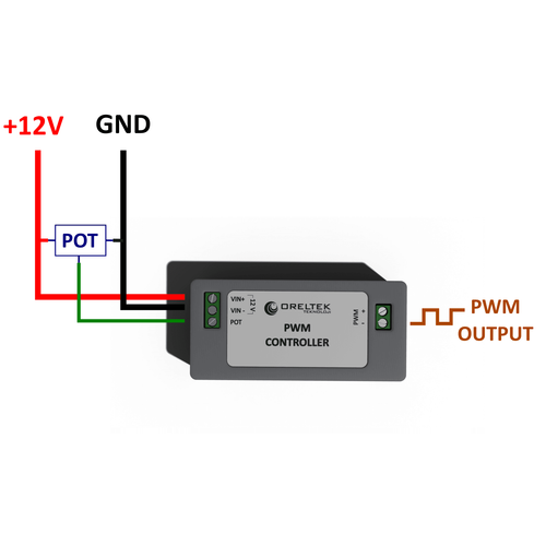 ORELTEK PWM Kontrol Modülü, 12V ile çalışan LED, motor, fan ve çeşitli DC yüklerin çıkış gücünü harici potansiyometre (POT) üzerinden hassas şekilde ayarlayabilmenizi sağlayan profesyonel bir güç kontrol modülüdür.